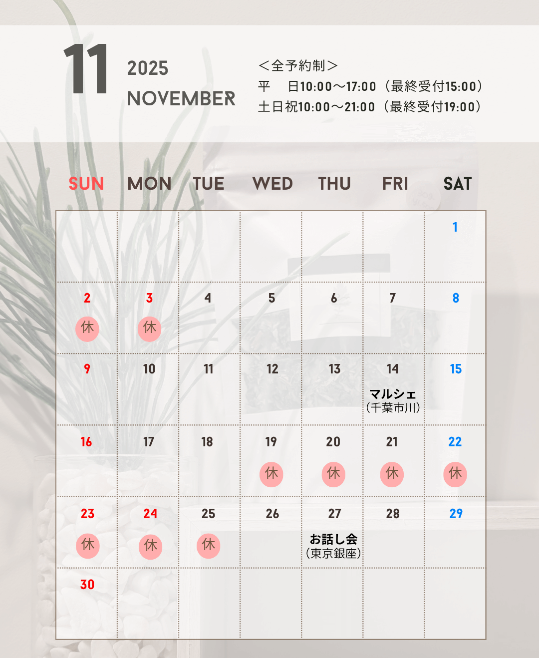 11月もみなさまとお会いできるのを楽しみにしています♡