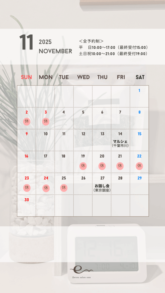 よもぎ蒸しとゴッドクリーナーをメニューとする “ 温める×巡らせる×出す ” を大切にした【温活×デトックス専門サロン】のDetox salon enn(デトックスサロンエン)です🌿 気候も過ごしやすくなってきて、いよいよ秋本番ですね😊 ... -